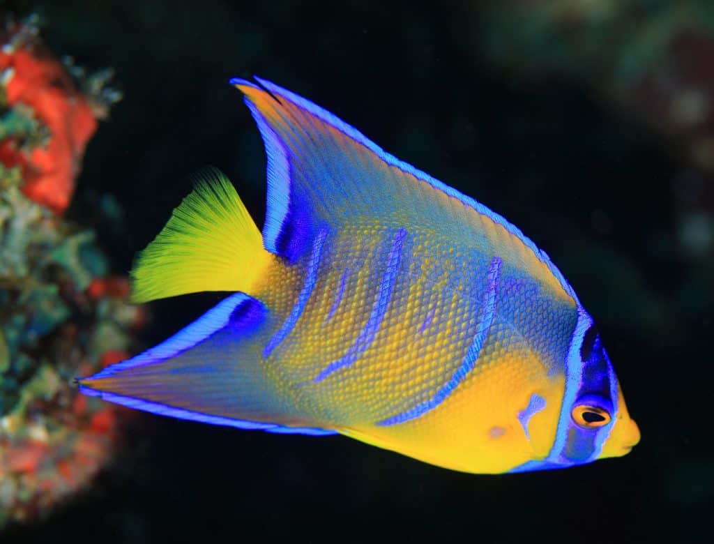 The Achilles Tang as a full adult can grow to about 10 inches. They are quite beautiful with a black background lined with orange and white around the fins as a juvenile. As an adult they grow a large teardrop shape near their tail. When agitated, they will raise their dorsal fins to give the appearance of being larger. They also have a barb on either side of their spine near the tail that will protrude and be used as a weapon. They are found in the waters of the Pacific from Oceana to Hawaii.
